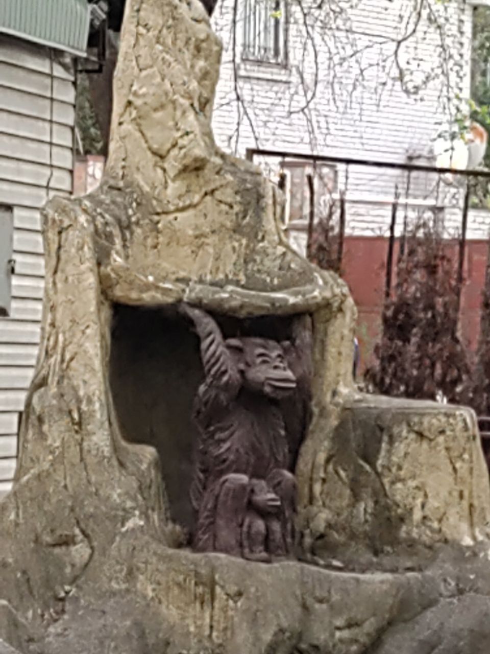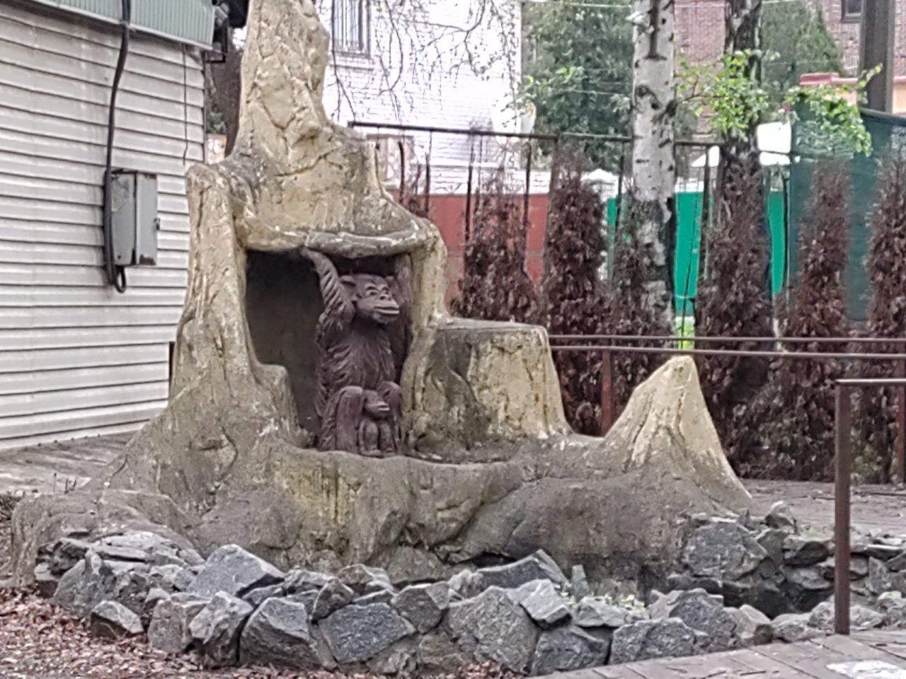 Как сейчас выглядит фонтан в сквере на проспекте Науки в Днепре: заложили досками и «посадили» обезьяну