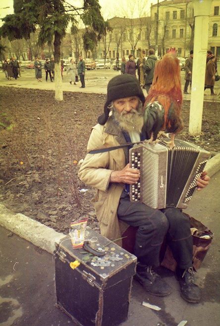 Как в 90-х выглядели уличные музыканты Днепра: баянист с петухом и оркестр у ЦУМа (ФОТО)