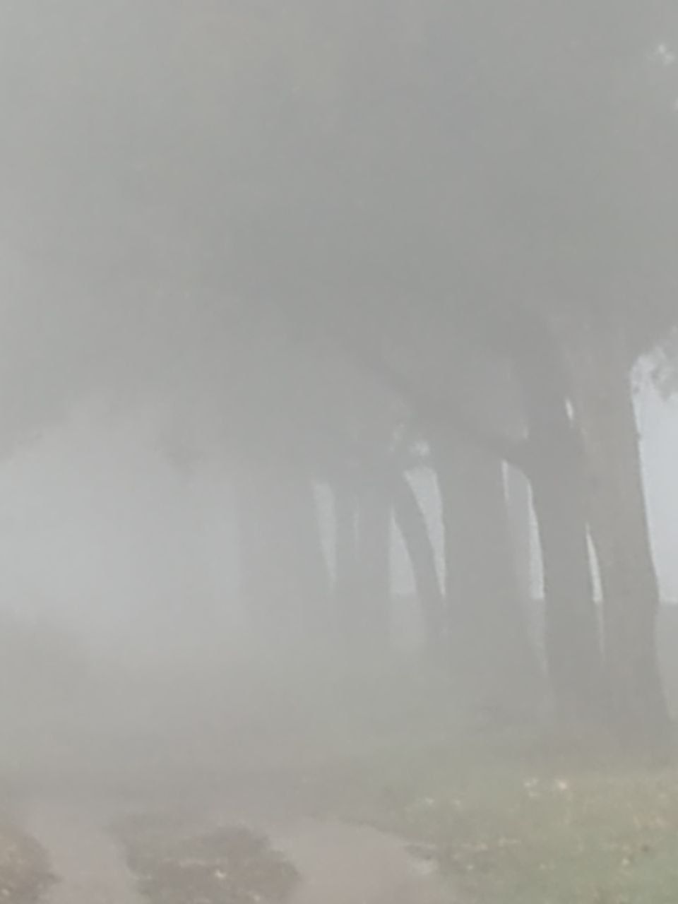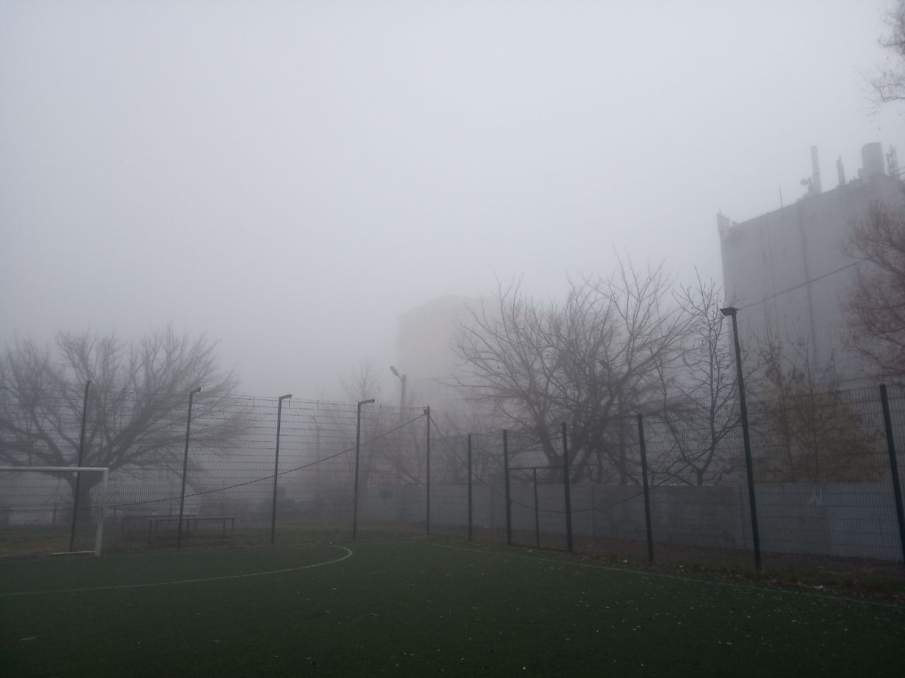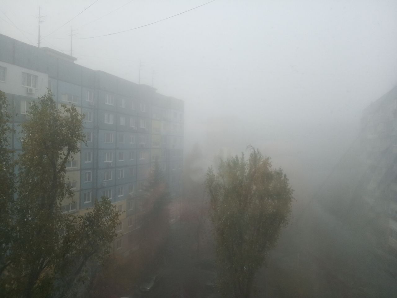 Местами туман настолько густой, что соседние многоэтажки полностью скрываются в нем. Детские площадки превратились в места для съемки фильмов ужаса.