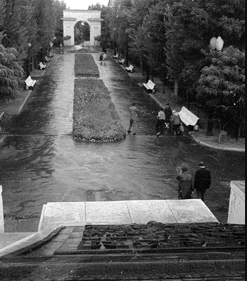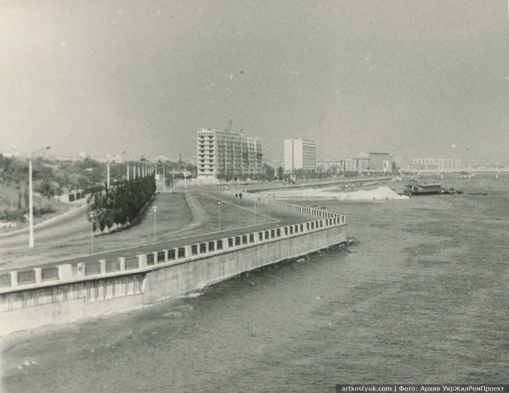К концу 1960-х годов был намыт и обустроен самый знаменитый участок набережной ведущий от парка к Фестивальному причалу. Тут только высадили деревья, еще не до конца обустроили ландшафт.
