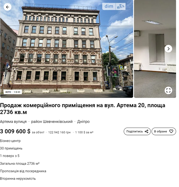 Общая площадь его на сегодня составляет 2736 кв м. В здании 30 помещений. Вот уже несколько месяцев оно продается. Хотят за старинный дом со множеством надстроек почти 123 млн грн.