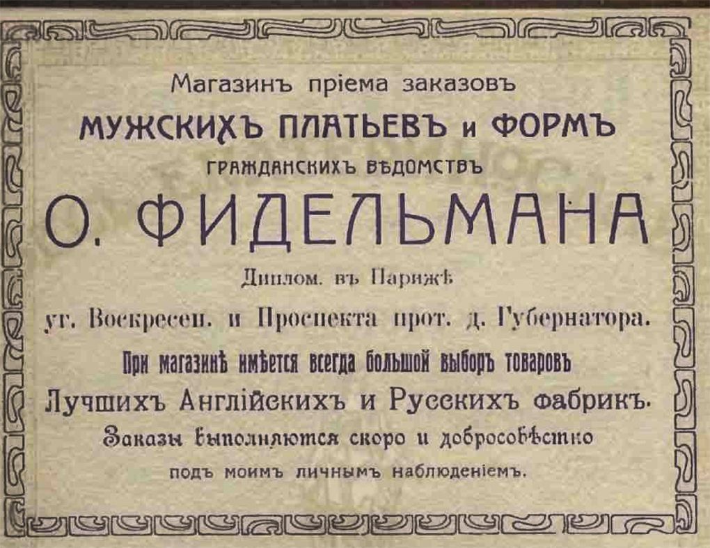 Вот таким образом рекламировали ателье по пошиву одежды и магазин мужских костюмов.
