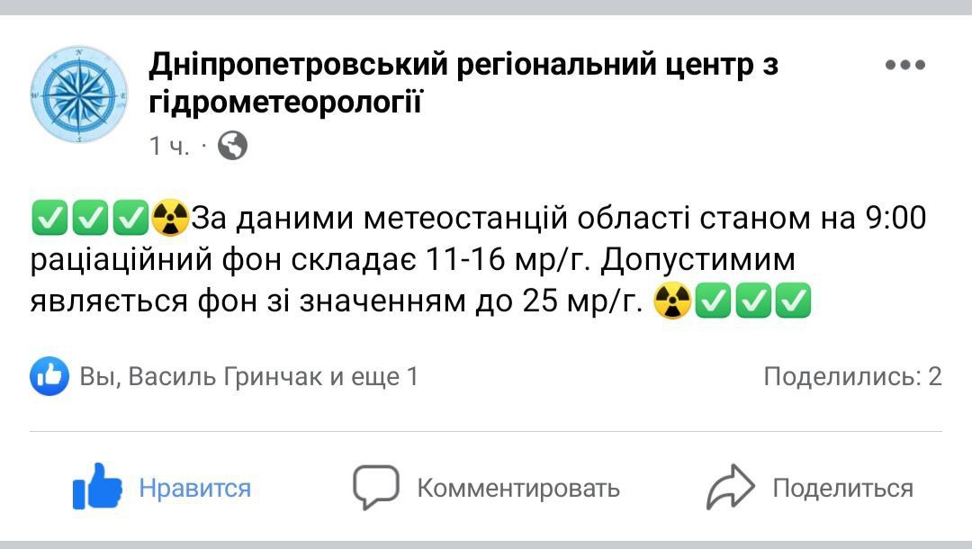 О том, какой сейчас радиационный фон в Днепре и области, сообщили представители Днепропетровского регионального центра гидрометеорологии.