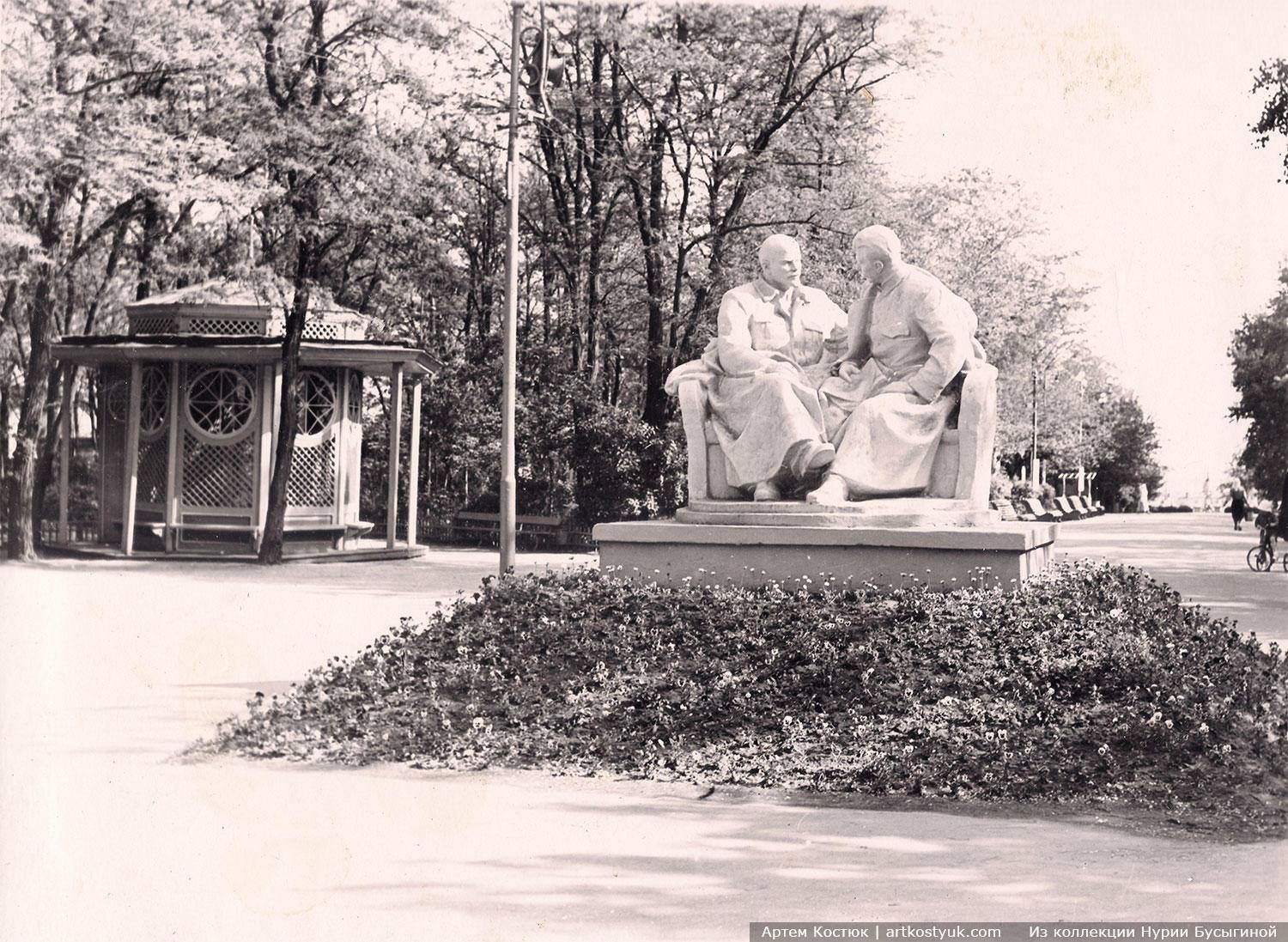 Не дивлячись на те, що парк був дитячий, тут встановили декілька пам’ятників вождям, а також облаштували стенди с фотографіями кращих працівників району.