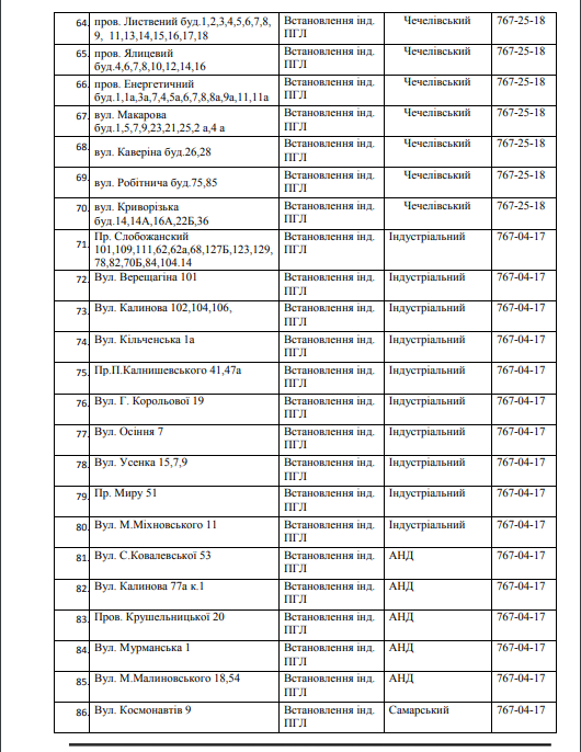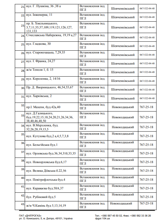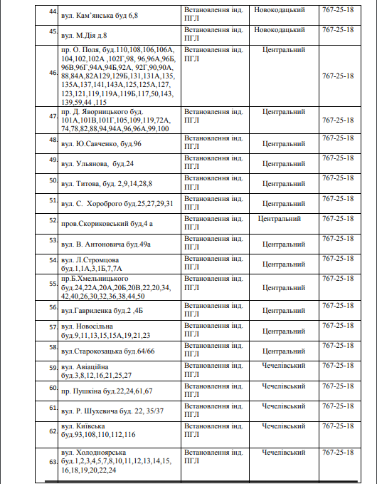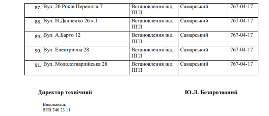 Обязательным условием возвращения подачи газа является отсутствие поломок и технических проблем во всех перечисленных ниже адресах.