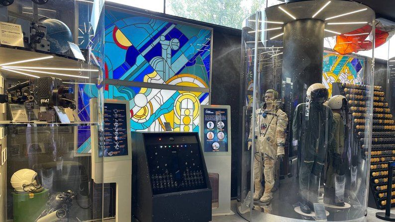 Сегодня в планетарии есть зона, где собрано оборудование, которое работало тут раньше, до реконструкции. Тут также можно увидеть авиационные костюмы, модель скафандра.