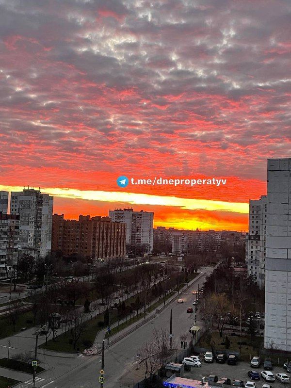 Он встретил днепрян необычным красным рассветом и небольшим морозом. Все горожане с утра могли видеть вот такой вид за окном: