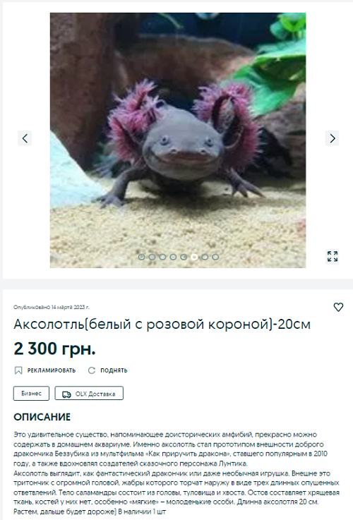 Автор объявления утверждает, что именно аксолотль стал прототипом Беззубика из мультика «Как приручить дракона».