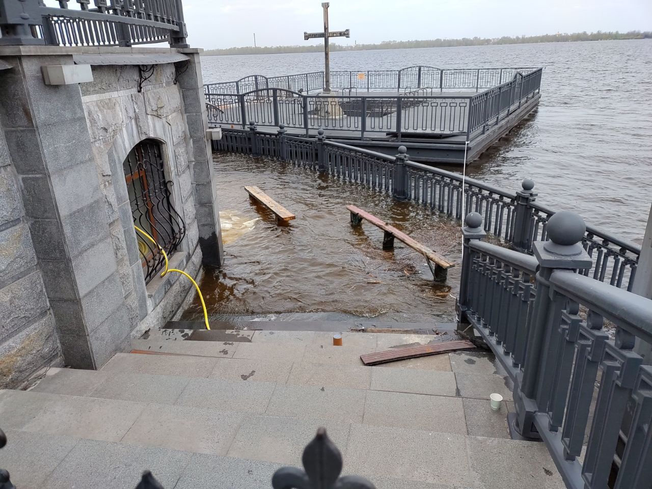 Крест посреди воды: в Днепре на набережной затапливает храм Иоанна Крестителя (ФОТО)