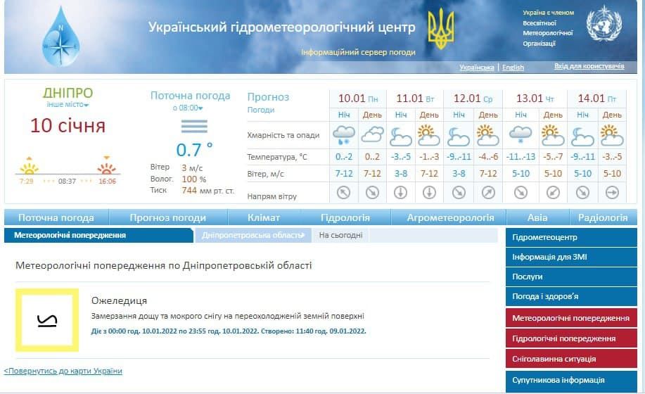 10 января на дорогах Днепра и области ожидают гололед. Согласно прогнозу Укргидрометцентра, в городе сегодня ожидается замерзание дождя и мокрого снега на переохлажденной поверхности земли.