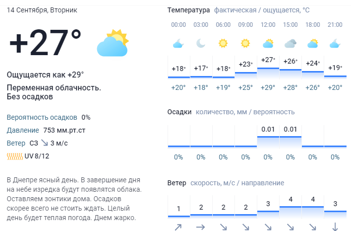 Летнее тепло вернулось в Днепр: погода на вторник, 14 сентября