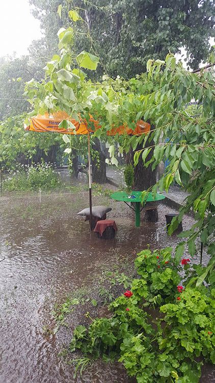 «Аномалії не тільки в політиці, але й в природі. Злива з градом. Всі рослинки на городі полягли», - отмечается в сообщении.