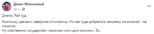 «Кнопочку сделали, наверное, отчитались. Но как туда добраться человеку на коляске - не понятно. Ну собственно государство «галочка» или «для галочки». Эх..», - написал на своей странице Денис.