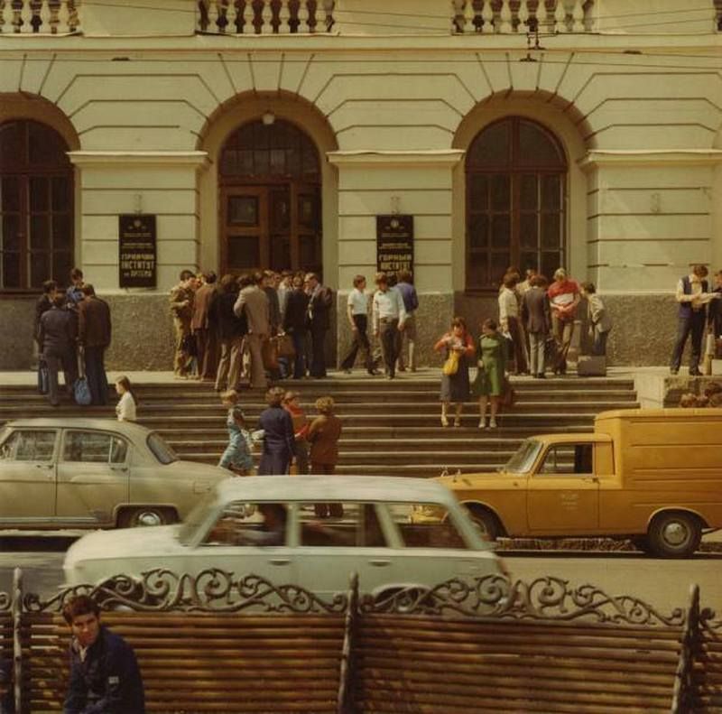 Аллея у бывшего Горного института всегда была многолюдной – в основном тут собирались студенты вуза. На аллее стояли лавочки с необычным дизайном.