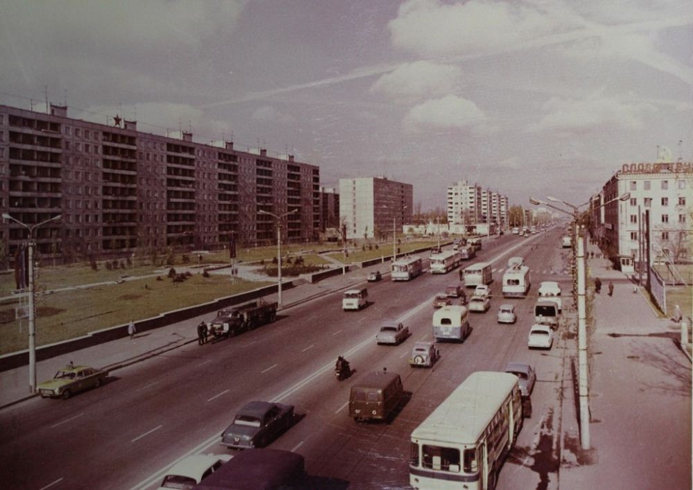 Слобожанский проспект был одной из самых «загруженных» дорог и в 1970-е годы.