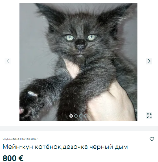 Почти 30 тыс грн обойдется котенок мейн-кун черного цвета. Ей еще нет и двух месяцев, но уже есть документы, подтверждающие родословную. Новый хозяин получит котенка только как тому исполнится 90 дней. Продавцы обещают к этому времени обучить хвостатого всему: лотку, когтеточке и прочим вещам.