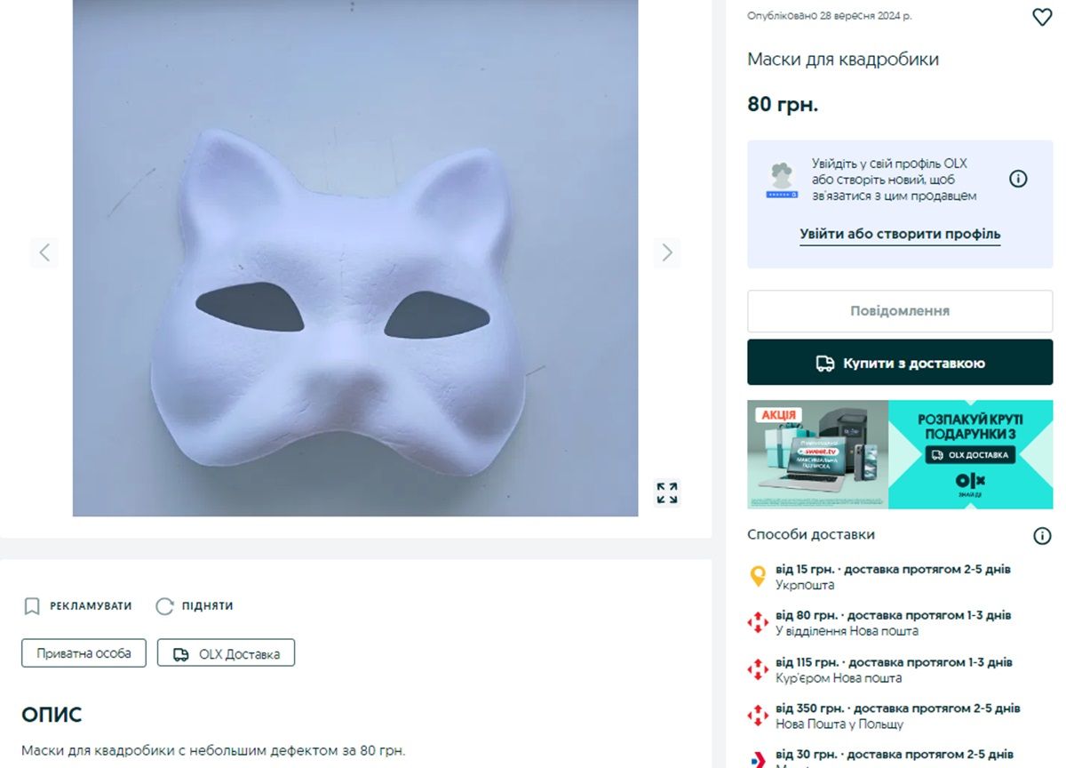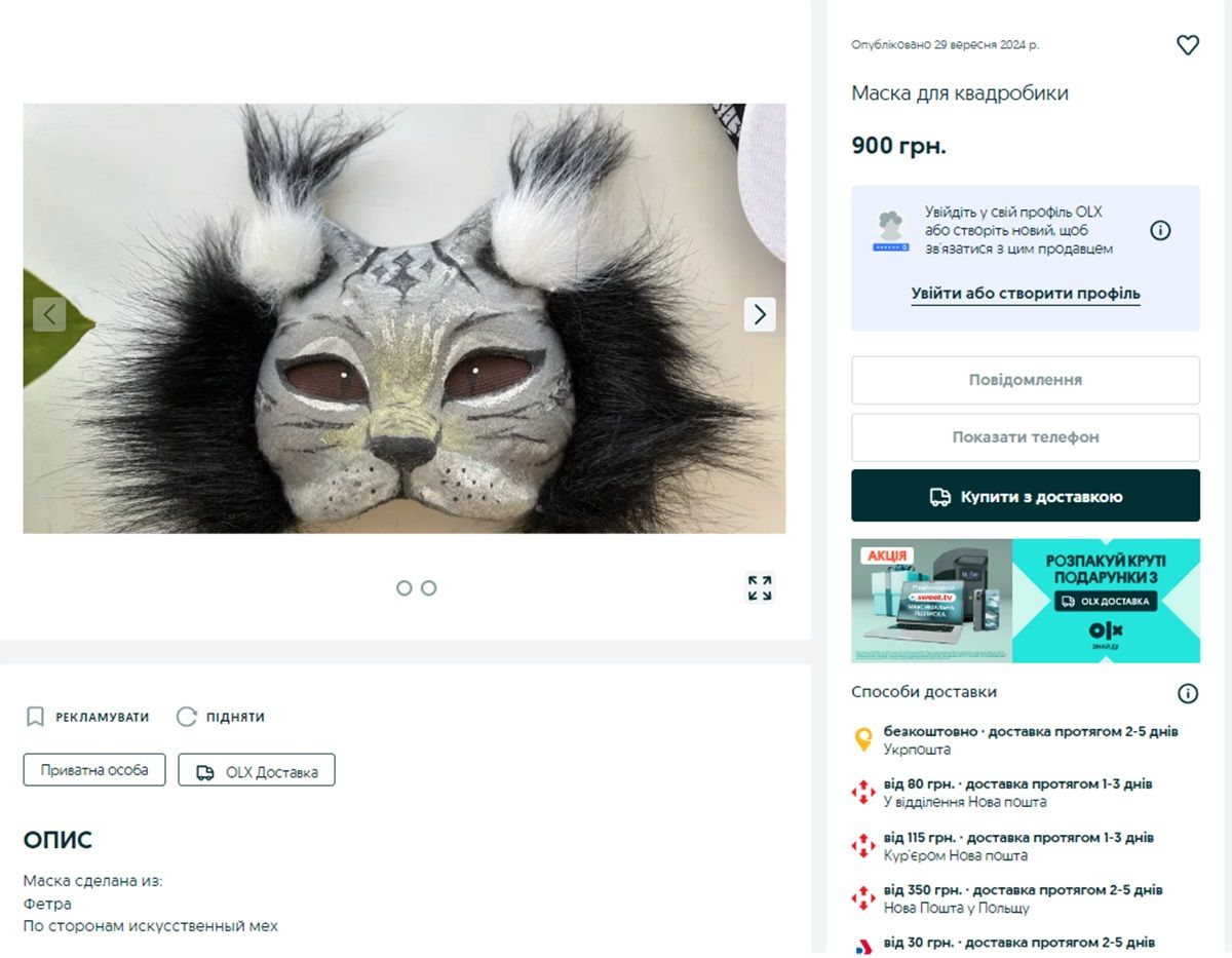 Самая простая маска для квадробинга обойдется в среднем 80 грн. Покупателю предлагается белая маска, которую можно самостоятельно разрисовать под практически любое животное.