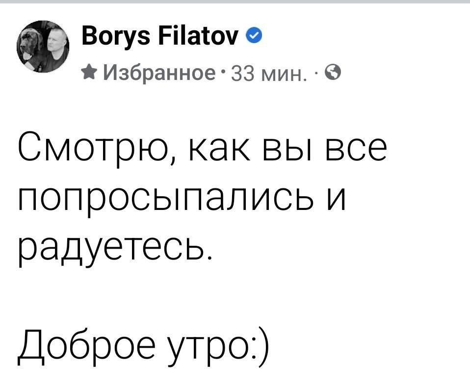 Смотрю, как вы все попросыпались и радуетесь. Доброе утро :) – отметил он.