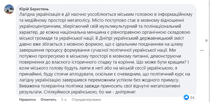 Горожане и украинцы из других городов заметили это и тоже начали писать комментарии под сообщениями городского головы на украинском.