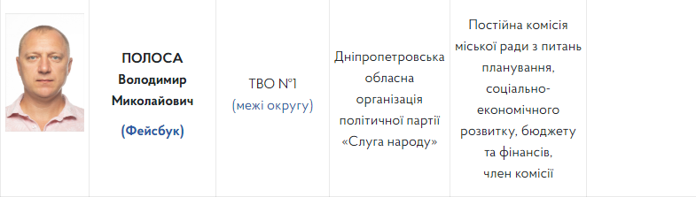 Владимир Полоса для Новомосковской мэрии человек не чужой. Он является действующим депутатом Новомосковского горсовета от партии «Слуга народа».