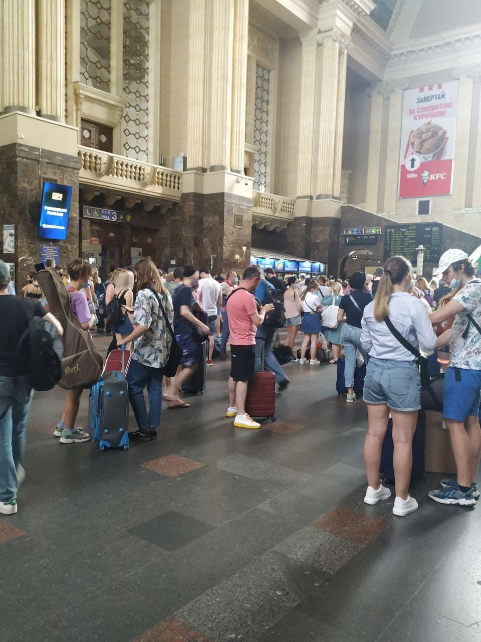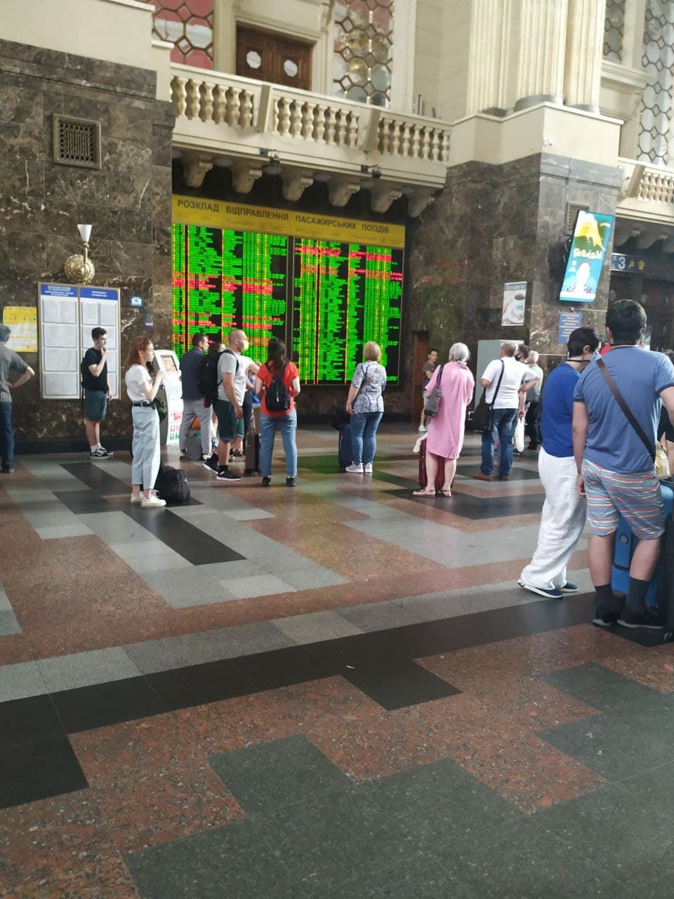 Сейчас людей пустили обратно в здание вокзала, но пассажиры все равно не могут уехать из столицы, потому все поезда задерживаются на 1,5-2 часа.