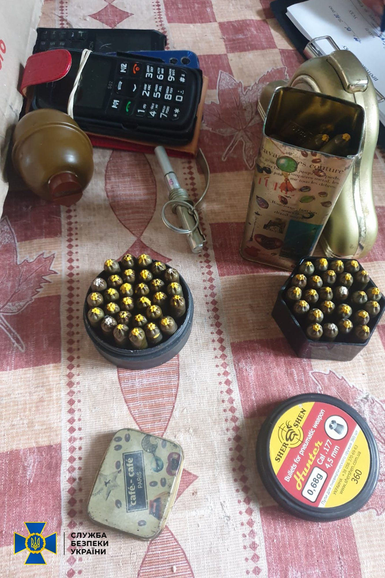 Під час обшуків у затриманого вилучили вибухонебезпечні предмети, комп’ютерну техніку та мобільні термінали, які підтвердили його причетність до протиправної діяльності.