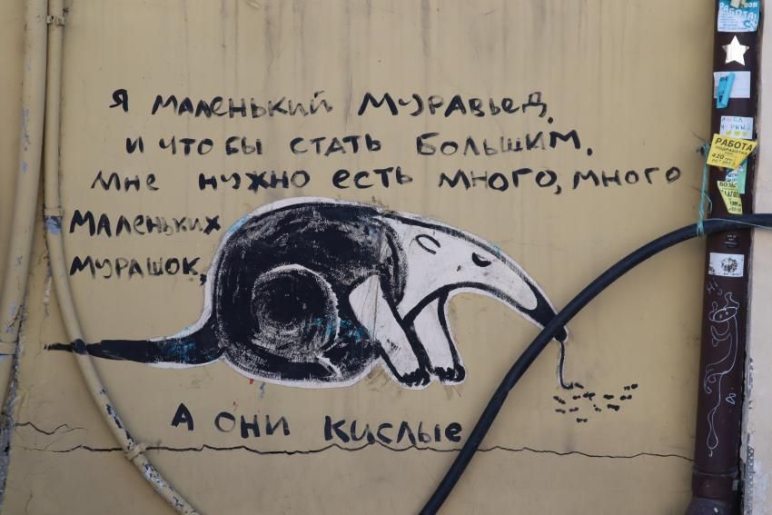 На нескольких зданиях нашего города изображен забавный муравьед. Он полюбился многим жителям Днепра.