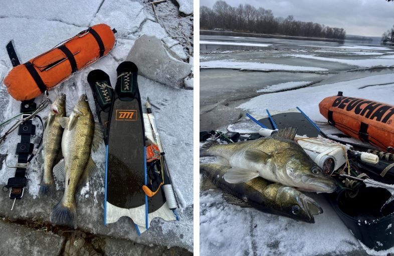 Уловом охотник поделился в facebook-сообществе "Рыбалка в Кривом Роге". Роман занимается фридайвингом и иногда рыбачит, поэтому на этот раз решил совместить эти свои хобби и нырнул под лед на Днепре.