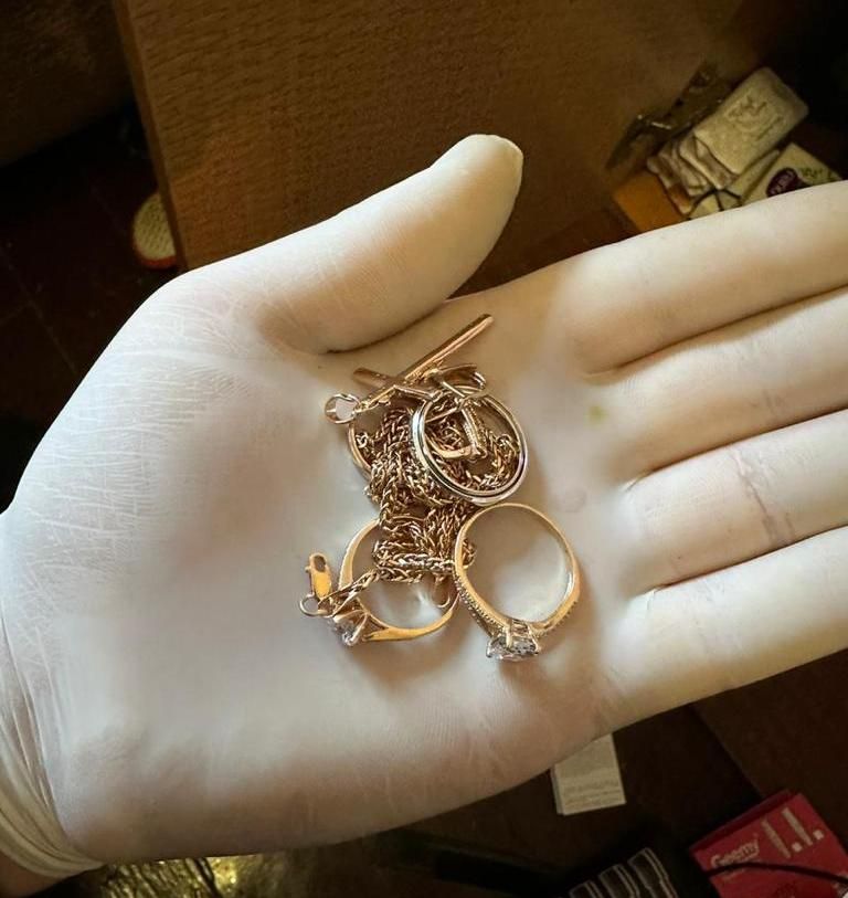 Полицейские изъяли драгоценности, среди которых были золотые кольца, цепочки и другие ювелирные изделия. Кроме того, у злоумышленника еще нашли гранату и запал к ней.