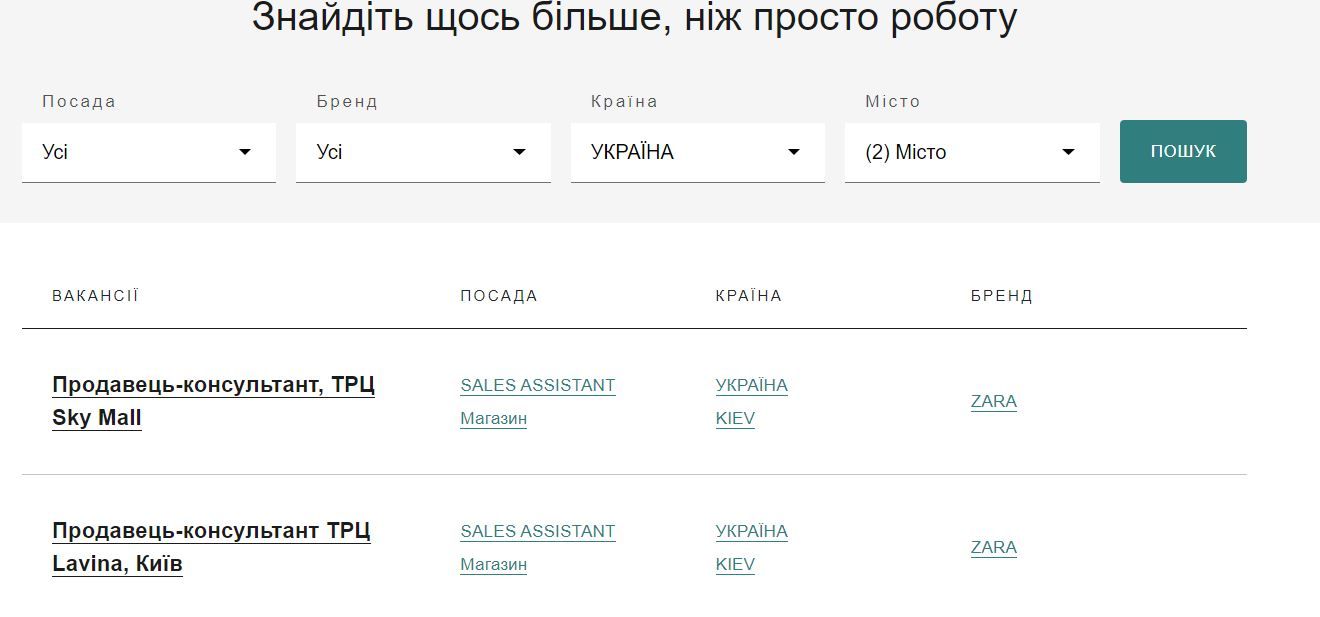В каких городах возобновят работу магазины не уточняется, но на сайте Inditex Украина в разделе вакансии ищут продавцов-консультантов в Киеве.