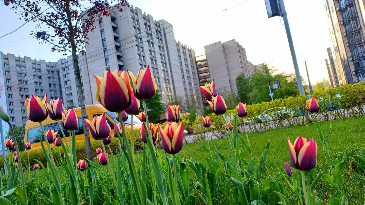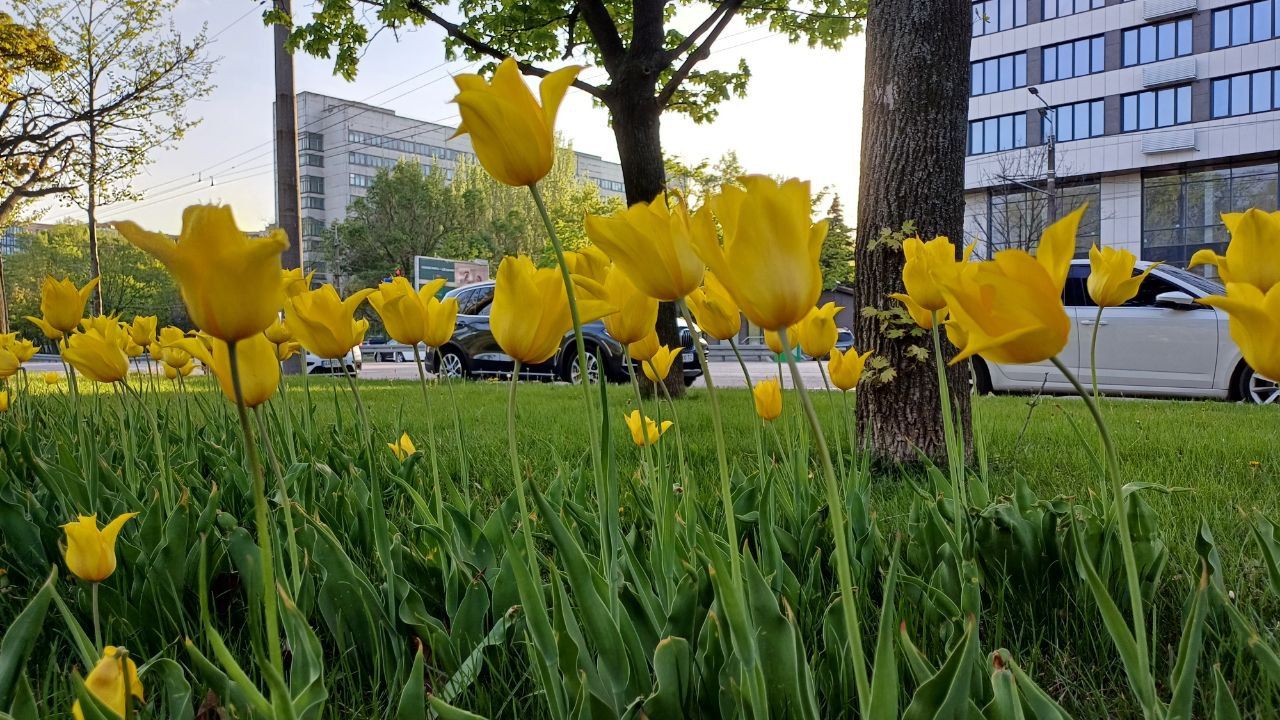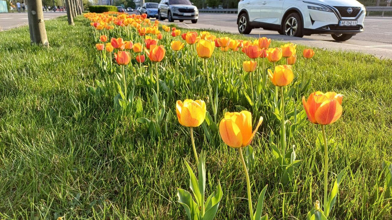 Благоприятная погода позволила днепрянам насладиться тюльпанами на улицах почти на месяц раньше обычного.