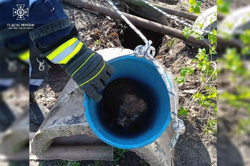 На Днепропетровщине щенок упал в 5-метровый колодец: его доставали спасатели