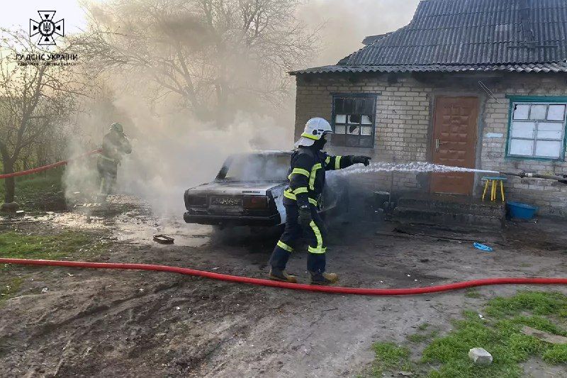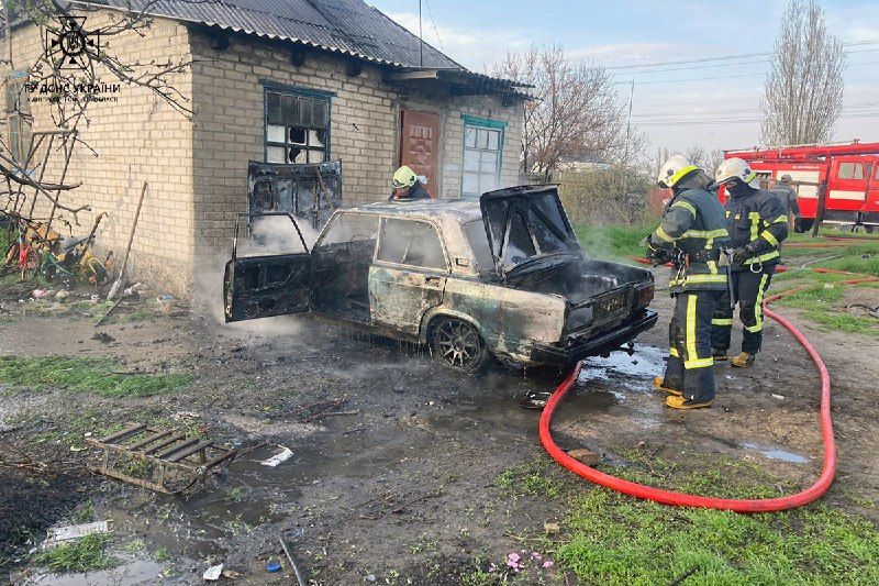 На Днепропетровщине возле дома загорелся ВАЗ: пожар тушили 8 спасателей (ФОТО)