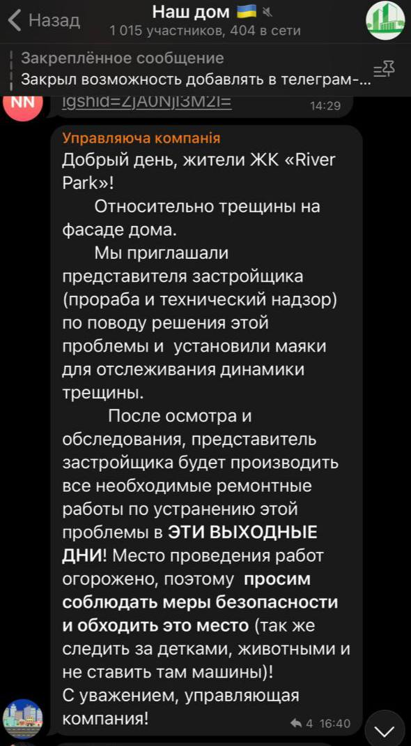 Мы попытались связаться с представителями жилищного комплекса, но никто не отвечал на звонки. Надеемся, что проблему устранят и никто не пострадает!