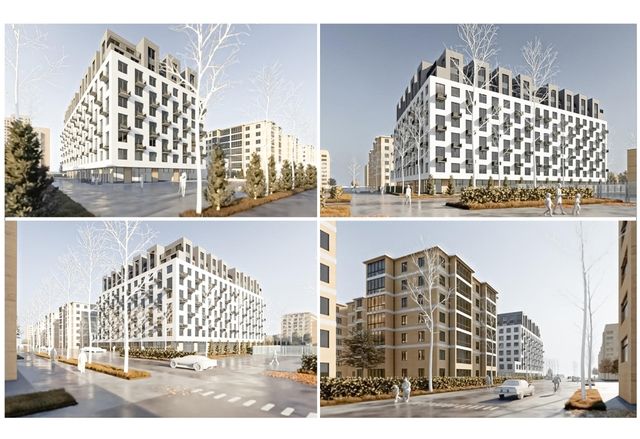 Новый жилой комплекс состоит из двух 9-этажек. В них разместят 181 однокомнатную квартиру, офисы, торговые площади и подземный паркинг.