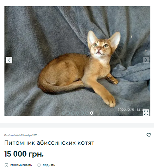 Котенок абиссинской породы обойдется в 15 тыс грн. Ему уже исполнилось полгодика, зверь приучен к лотку и когтеточке. Будущему владельцу обещают предоставить всю информацию о родителях котенка, отдадут его ветпаспорт.