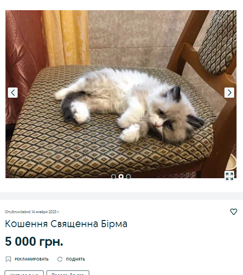 Котенок породы бирма обойдется в 5 тыс грн. В объявлении ничего не сказано о родителях зверя, наличии ветпаспорта и прочего. Порода очень редкая, и чтобы ее найти в Днепре – придется побегать.