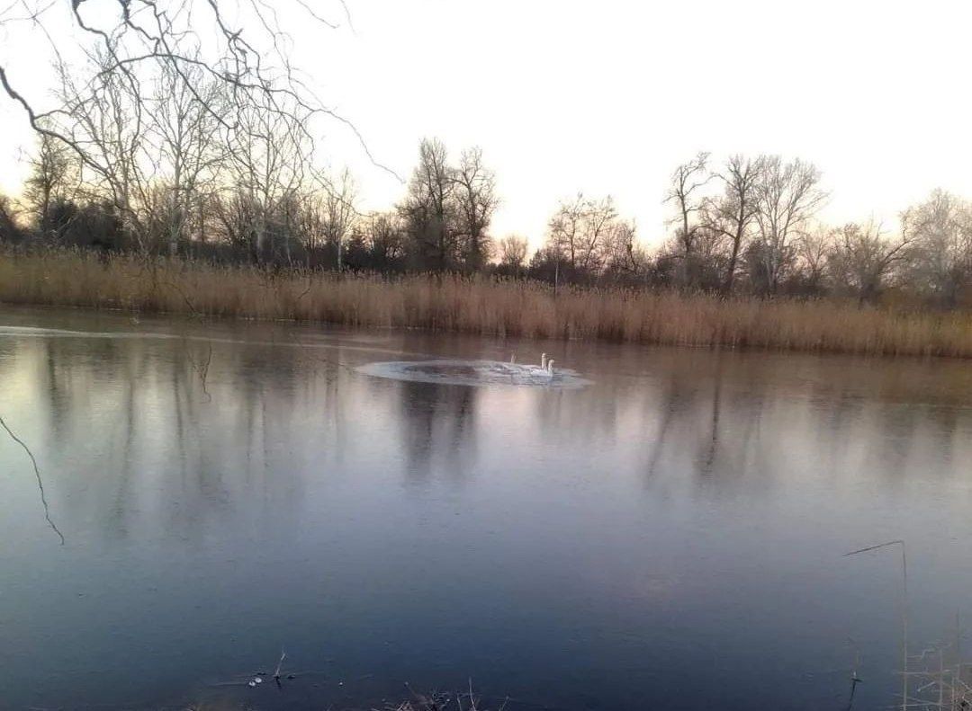 Не полетели, потому что молодняк ранен: в Днепре на озере Шпаковое может замерзнуть семья лебедей