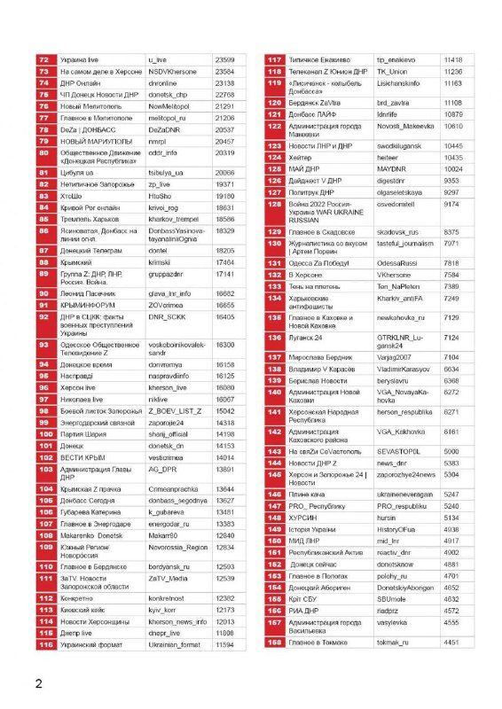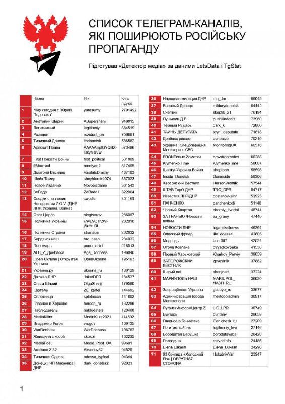 Поэтому пересмотрите внимательно этот список, отправьте его своим родным и друзьям. И обязательно отпишитесь от этих рупоров российской пропаганды!