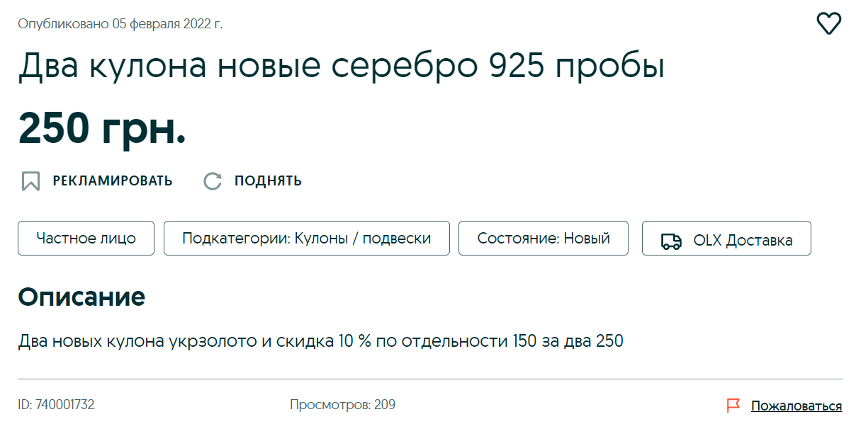 За один кулончик просят 150 гривен. Если два, то отдадут за 250. За скидку 300 гривен в ювелирном магазине, пользователи просят по 90 гривен или 150 гривен. Цена зависит от продавца и суммы самого купона. Пока не понятно, купит ли у них кто-то эти украшения, ведь пока никто не знает, настоящее там серебро или нет.