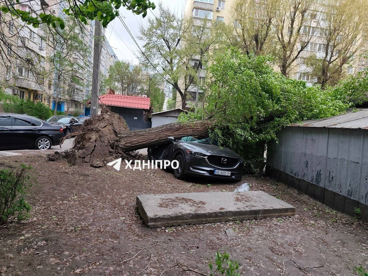 Сегодня, 26 апреля, Днепр накрыла непогода. В местных телеграммах-каналах публикуют последствия шквального ветра.