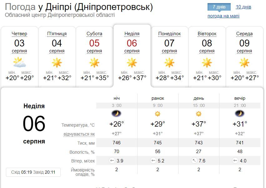 В Днепре жарче всего будет в субботу и воскресенье. Даже ночью температура воздуха не опуститься ниже +26 градусов тепла.