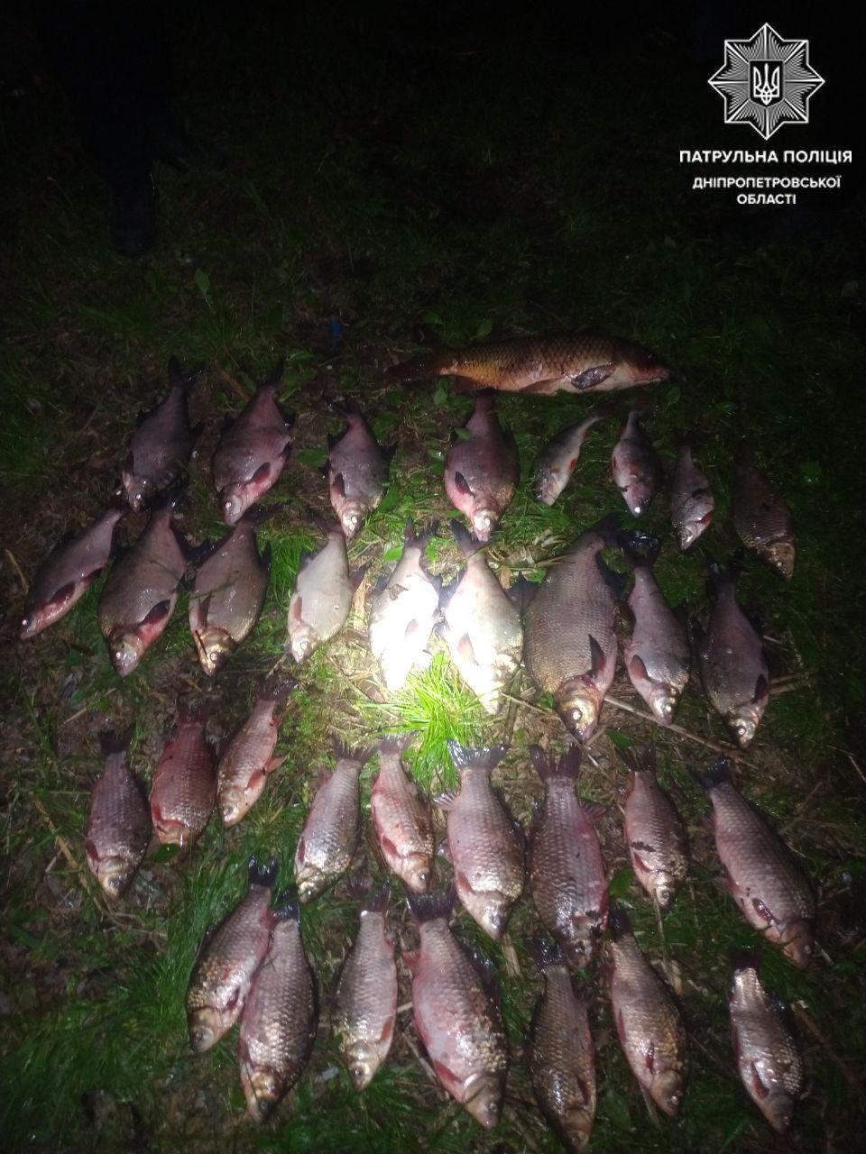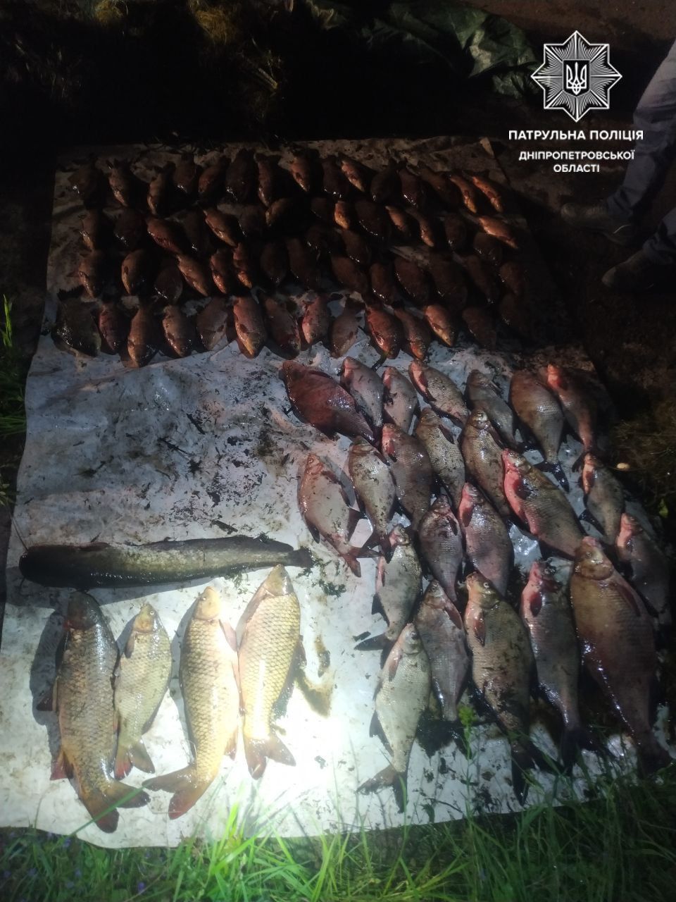 7 мая в Новокодакском районе инспекторы обнаружили автомобиль ВАЗ, который двигался во время комендантского часа. Его остановили. Во время проверки водителя и его транспортного средства полицейские обнаружили сетки, резиновую лодку и свежевыловленную рыбу: 60 карасей, 4 карпа, 23 леща и 1 сома. Предварительно, сумма ущерба составила почти 153 тысячи гривен.