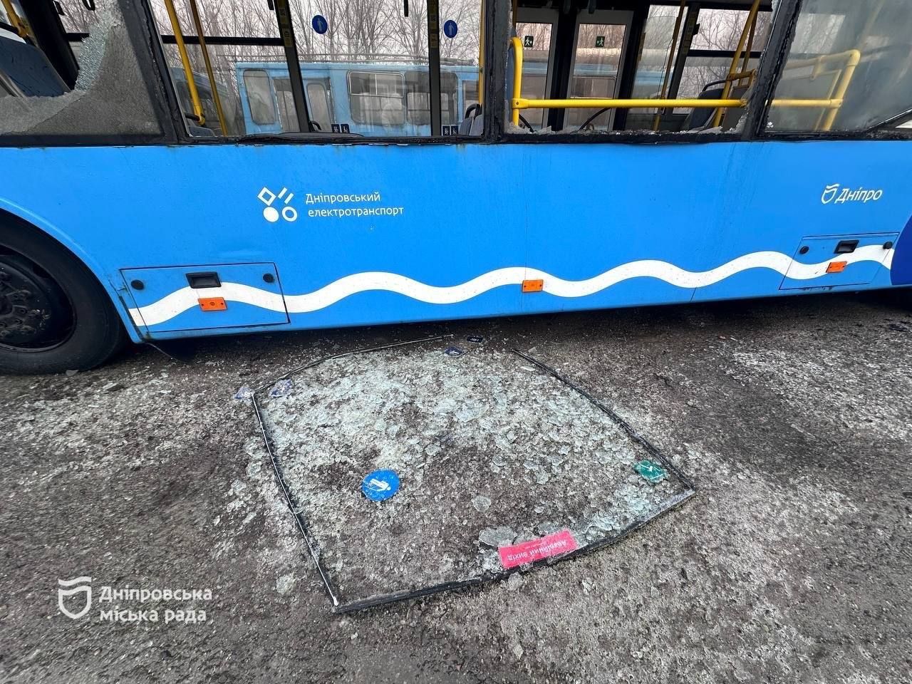«В результате взрыва значительные повреждения получили около 18 троллейбусов, что составляет 23% инвентарного количества транспорта депо. В новых и старых моделях выбито около 90 скол и стеклопакетов. Также выбито более 100 окон в служебных помещениях, цехах и административном здании, разрушены три служебных автомобиля депо. Кроме этого, взрывом сломана металлическая контактная опора, оборваны пять поперечных и несущих тросов и поврежден управляемый стрелочный узел контактной сети, обеспечивающий заезд троллейбусов в цехи обслуживания», - сообщил заместитель начальника управления транспорта департамента транспорта и транспортной инфраструктуры Днепровского городского совета Иван Васючков.