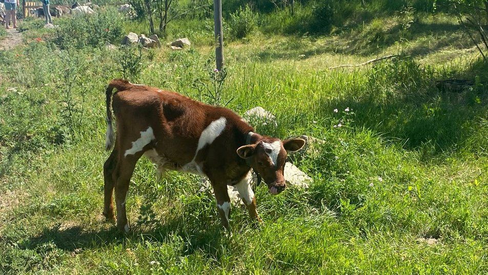 На молочной ферме под Днепром приютили животных, которых эвакуировали из-под обстрелов.