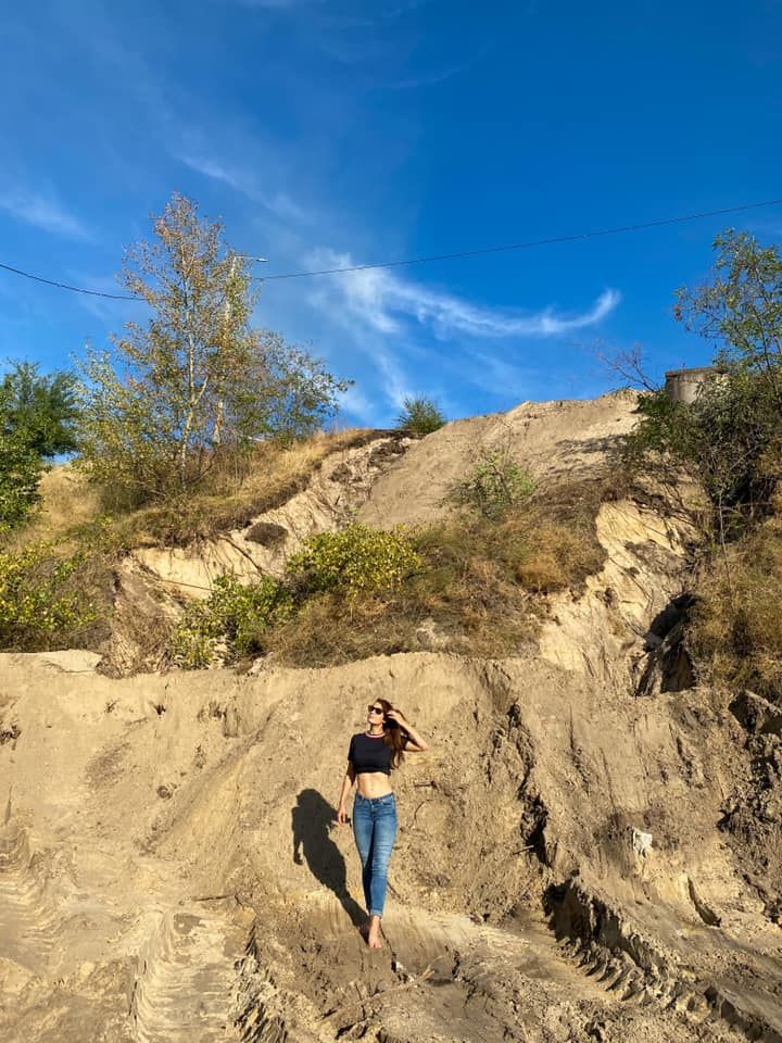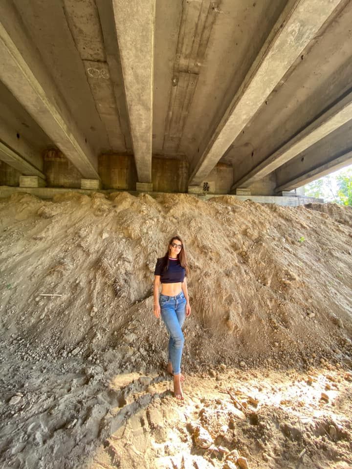Скандально известная ню-модель Анна Минюкова на фоне обрушившегося участка моста в Каменском.