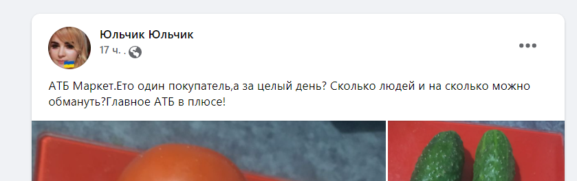 Местная жительница вернулась из супермаркета АТБ и решила повторно взвесить свои покупки. Выяснилось, что вес овощей в чеке и на домашних весах отличается. Об этом сообщила пользовательница под ником Юльчик Юльчик на Facebook.