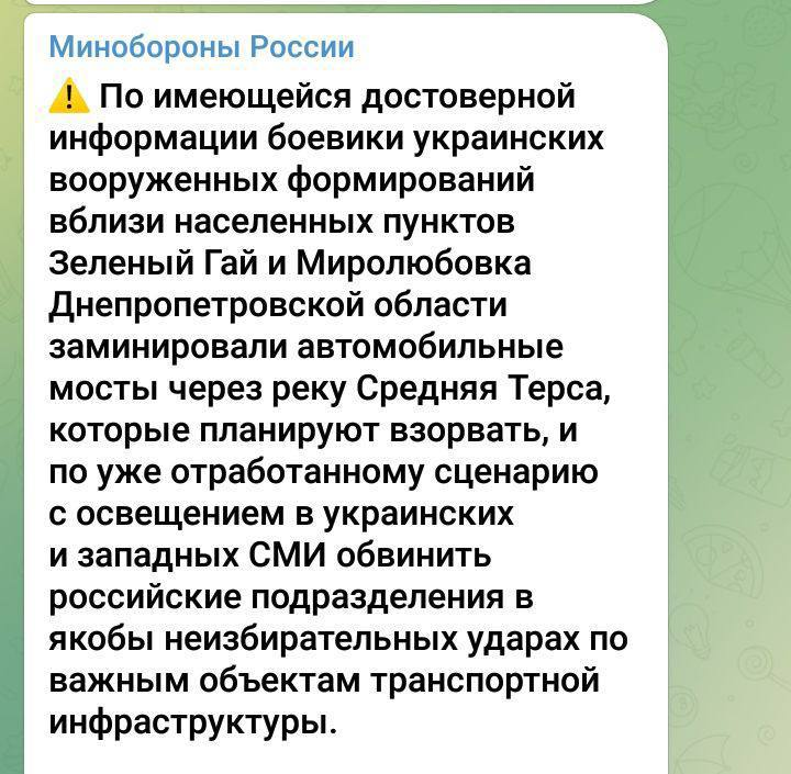 Напомним, ранее мы писали: "Очередной фейк: минобороны рф утверждает, что ВСУ заминировали мосты на Днепропетровщине".