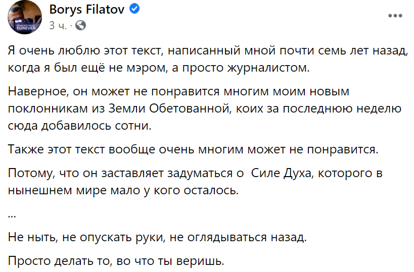 В прошлом журналист и историк, а нынче мер Днепра Борис Филатов, поделился с подписчиками своим журналистским текстом, написанным 7 лет назад. Он рассказывает историю о еврейском народе, который на долгие годы забыл родной язык, и еврее Бене-Йехуде, который воскресил язык государства.