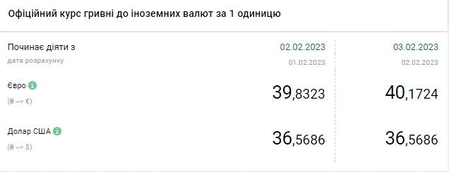 Национальный банк Украины установил официальный курс гривны к евро на 3 февраля 2023 года на уровне 40,1724.